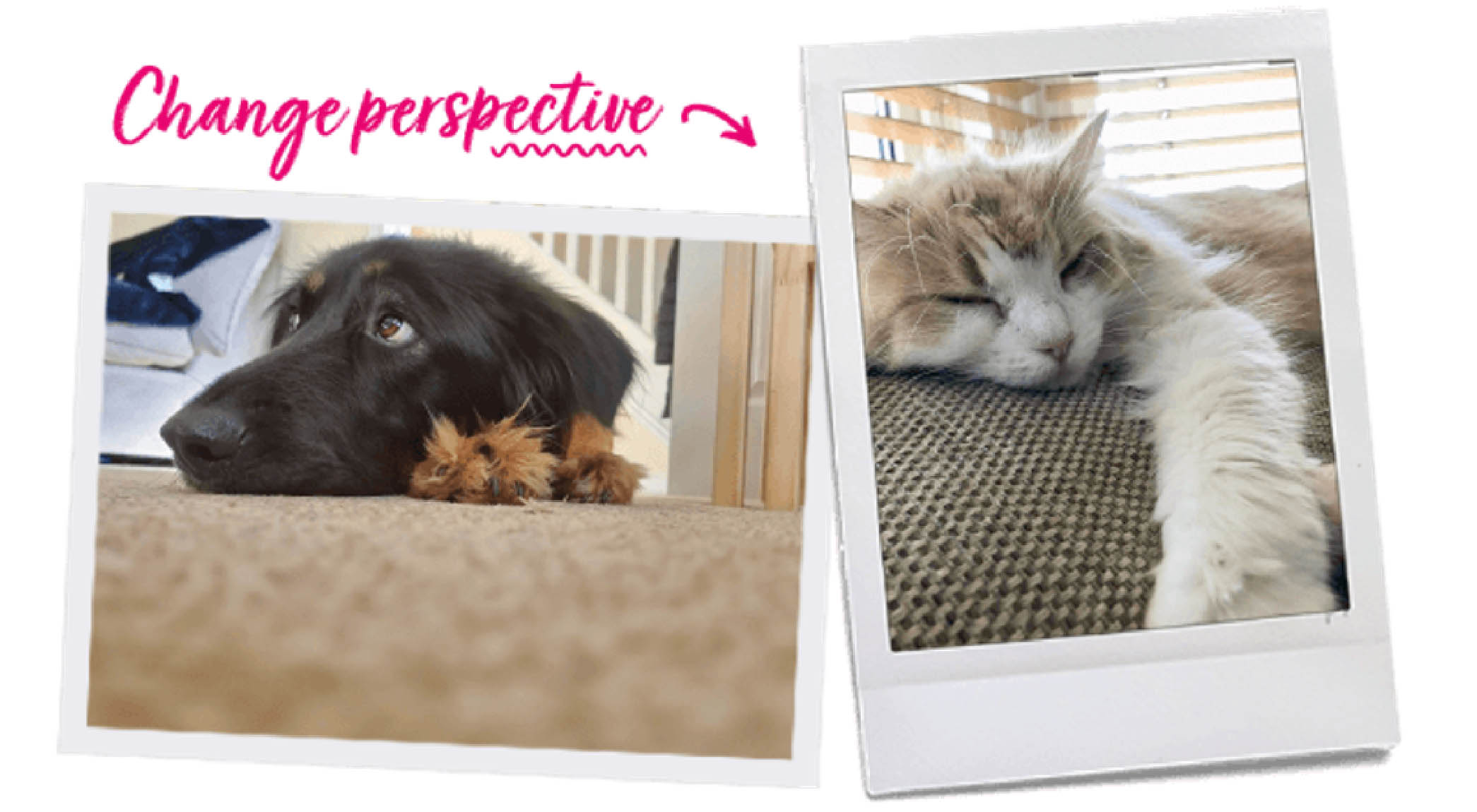 Instead of snapping a photo from above, why not get down onto your pet’s level and capturing them from a new angle? Simply crouch down or lie on the floor to refresh your style!