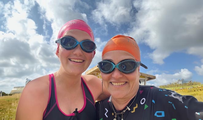 We’re both comfortable with the idea of the swim. We’ve been open water swimming at Bray Lake in Maidenhead and at Queensford Lake in Oxfordshire, comfortably covering 1000m, well in excess of the required distance. We’ve even managed to drag the rest of the family with us. Swimming in the open air with a bunch of fellow water nuts that come in all ages, shapes and sizes, all in our bright swimming hats and neon floats: truly it’s a wonderful way to spend a Sunday morning.