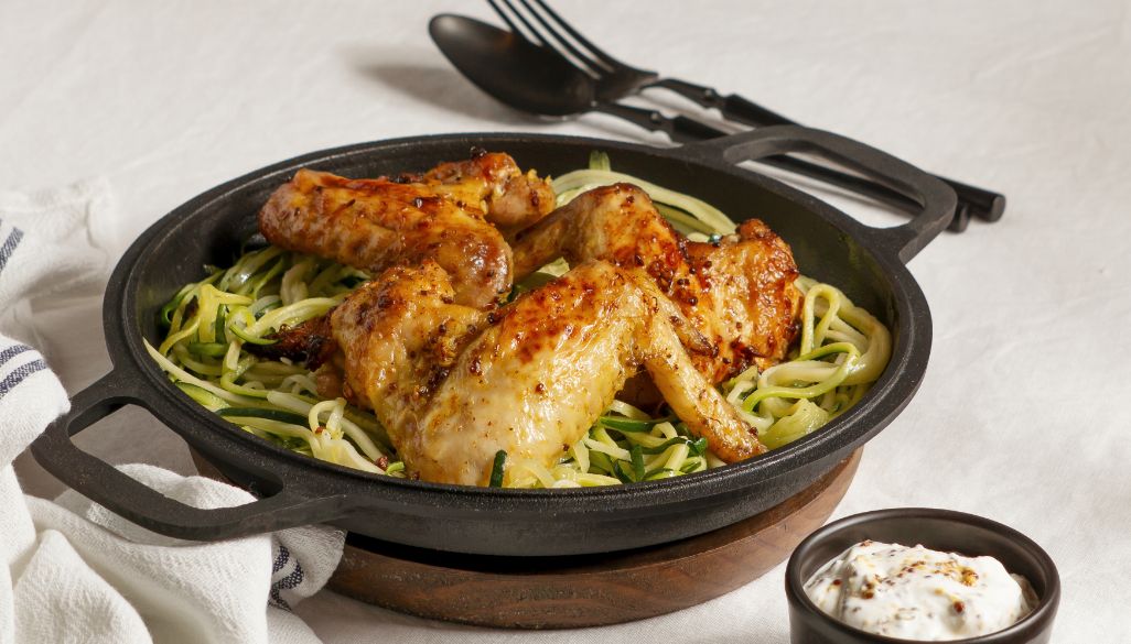 Prep in 10 minutes for four servings. Toss 4 chicken breasts, 2 courgettes, 200g cherry tomatoes, and 1 red onion (wedged) in 2 tbsp olive oil, juice of 1 lemon, 2 crushed garlic cloves, and seasoning. Roast at 200°C for 25 minutes. High in lean protein and vitamin C to boost immunity. realfood.tesco