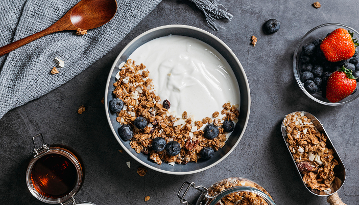 Breakfast doesn’t have to be fancy. The aim is to start the day with something that steadies your energy and reduces the chance of mid-morning snacking. A yoghurt bowl, eggs on toast or overnight oats all count.